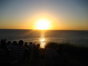Watching the sunset with the crowd, applauding as it disappears