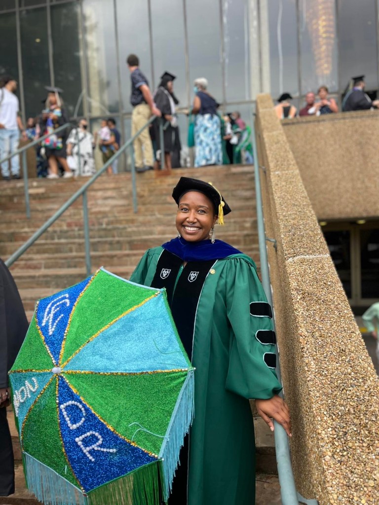 Joyfully, I was able to have my dad hood me, from the first Dr. in the family to the most recent:
